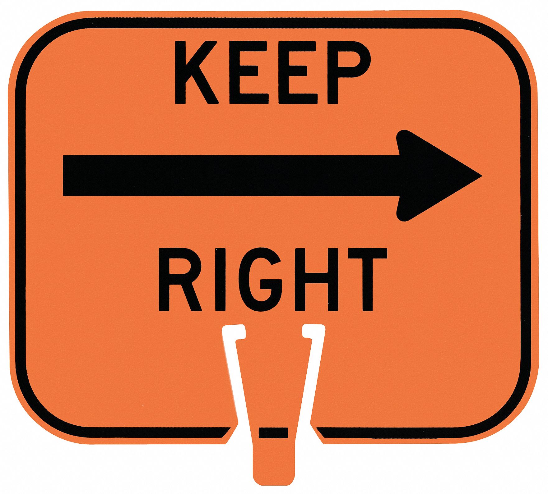 Traffic Cone Sign, Orng w/Blk, Keep Right