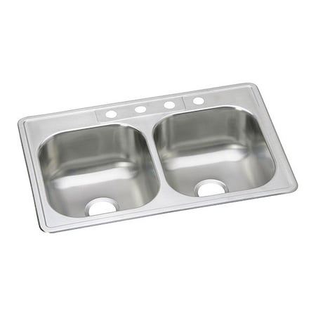 Dayton Stainless Steel 33" x 22" x 8-1/16", MR2-Hole Equal Double Bowl Drop-in Sink