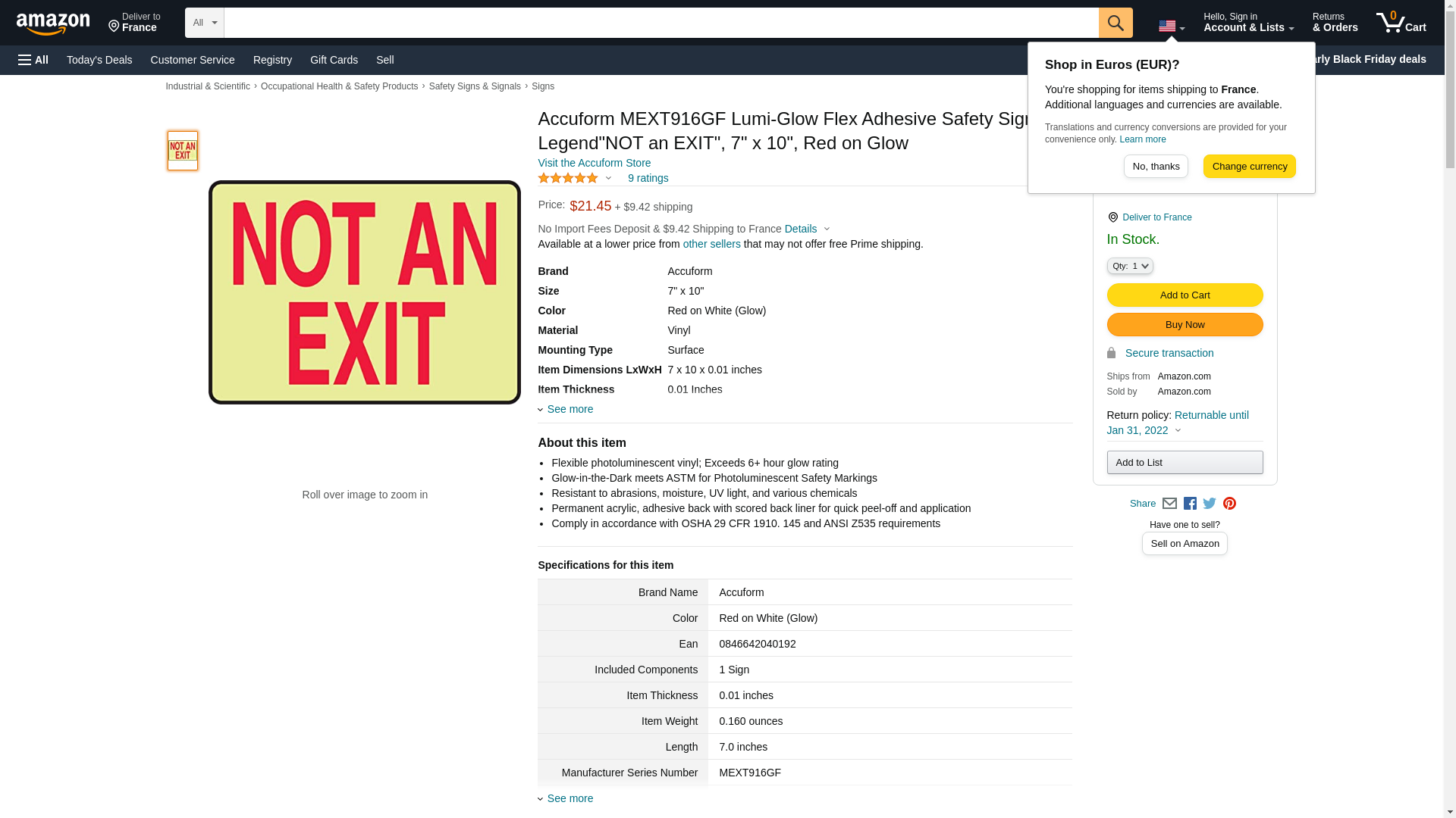 Accuform MEXT916GF Lumi-Glow Flex Adhesive Safety Sign, Legend "NOT an EXIT", 7" x 10", Red on Glow