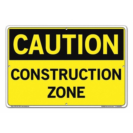Vestil SI-C-64-D-AL-063 CONSTRUCTION ZONE Caution Sign, Aluminum, 0.063" Overall Size, 18.5" W x 12.5" H