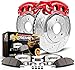 - Includes drilled & slotted rotors, Z36 Carbon-Fiber Ceramic Brake Pads, Red Powder Coated Calipers, Installation Hardware, and high-temperature ceramic brake lubricant