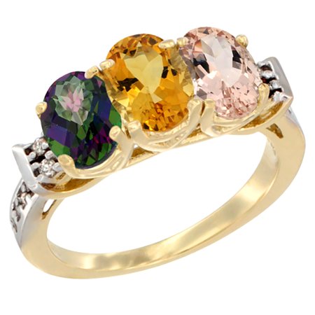 14K Yellow Gold Natural Mystic Topaz, Citrine & Morganite Ring 3-Stone Oval 7x5 mm Diamond Accent, sizes 5 - 10
