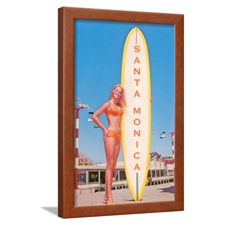 <ul> <li>Title: Santa Monica, Surfer Girl</li> <li>Paper Type: Art Print</li> <li>Product Type: Framed Art Print</li> <li>Framed in SOHO Pecan</li> <li>Arrives ready-to-hang for fast, simple installation</li> <li>Framed Size: 15x22 in.</li> <li>Handcrafted in the USA</li> </ul>