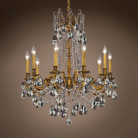 Classic And Decadent Chandelier Inspierd By Period Of The Austro-Hungarian Empire. This Antique Style Chandelier Dressed In Dazzling Crystals Surrounded By Candelabra Lighting Is Perfect Contrast To Every Home. Finishes, Crystal Shape Or Color To Choose From Will Add That Perfect Personal Touch To Any Room. 5 Ft. Of Chain And Wire Included To Reach Your Desirable Height. This Particular Light Fixture Comes With Smoke European Tear Drop Crystals And No Bulbs