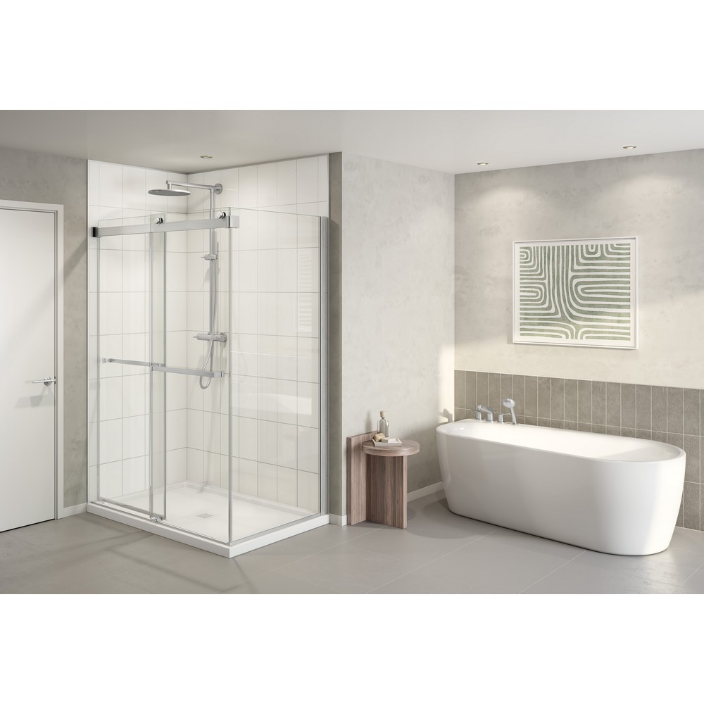 FLEURCO NPUS4832R-25-40 GEMINI PLUS 45-48 W X 79 H INCH SLIDING OR BYPASS 2-SIDED SHOWER DOOR, BRUSHED NICKEL, RIGHT
