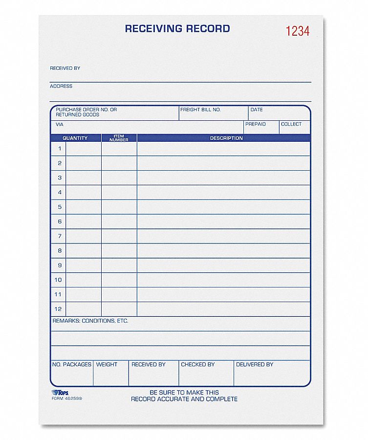 TOPS? Receiving Record Book, 5-1/2 x 7-7/8, Two-Part Car