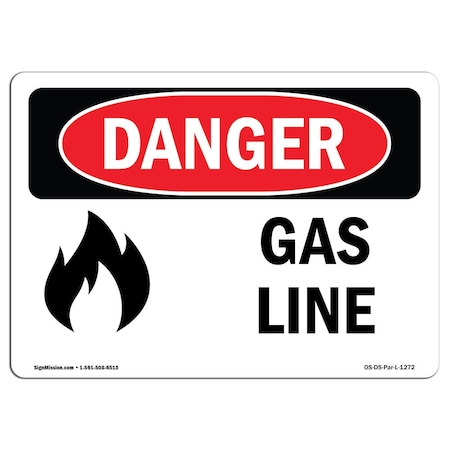 OSHA Danger Sign, Gas Line, 14in X 10in Aluminum