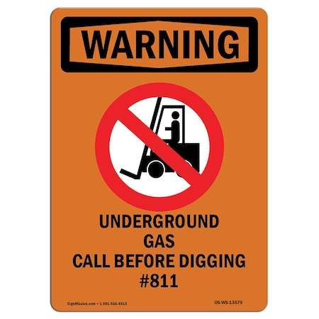 OSHA WARNING Sign, Underground Cable W/ Symbol, 24in X 18in Rigid Plastic