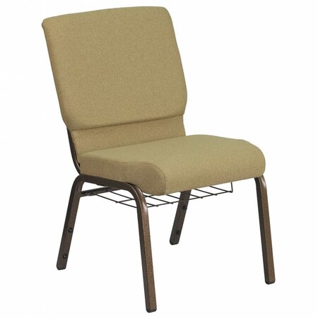 Flash Furniture HERCULES Series 18.5''W Church Chair in Moss Green Fabric with Cup Book Rack - Gold Vein Frame