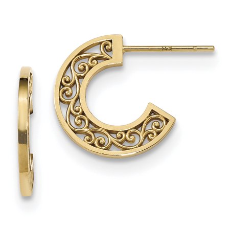 14K Polished Hidden Filigree Design C-Hoop Post Earrings TL1039