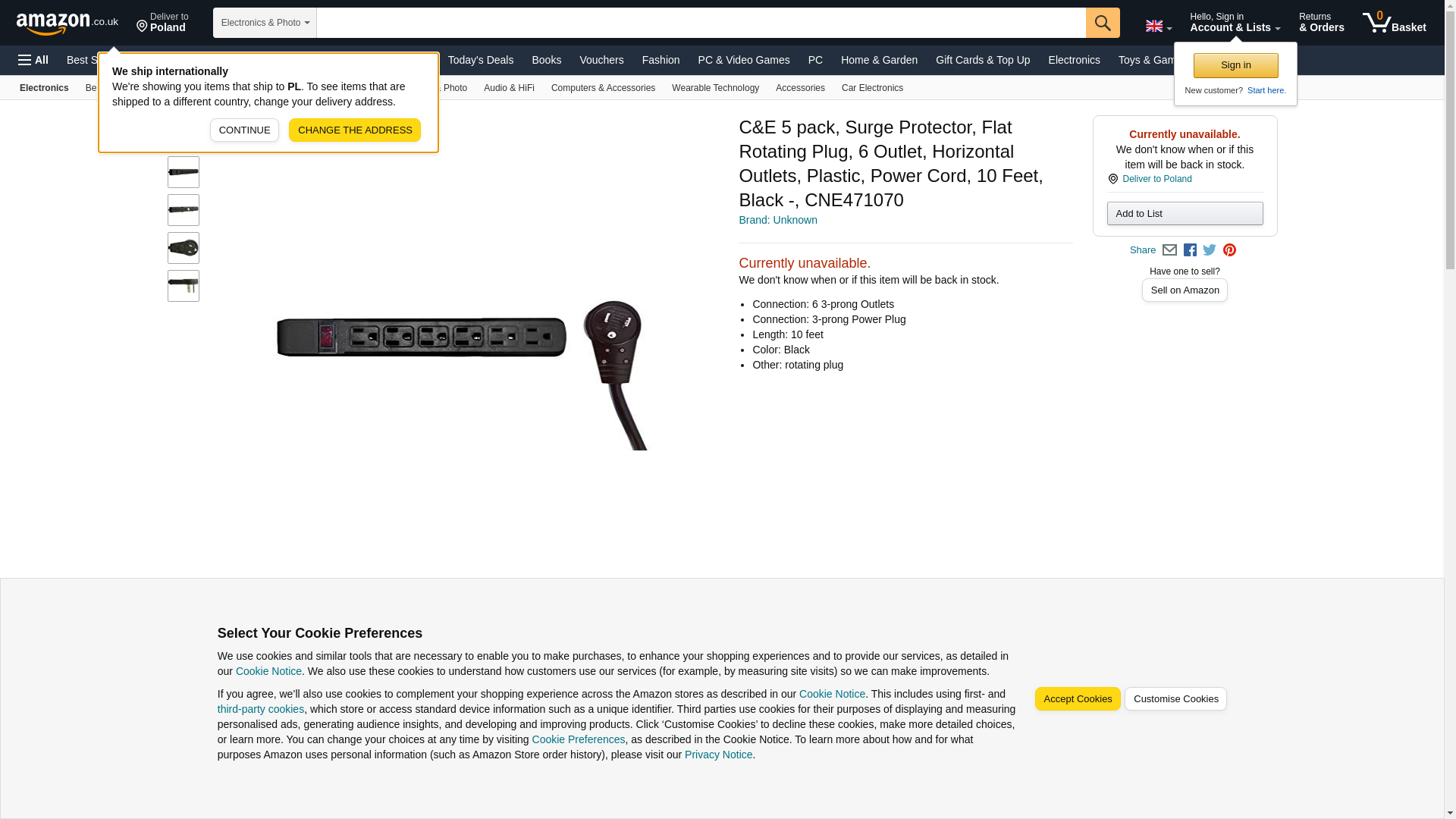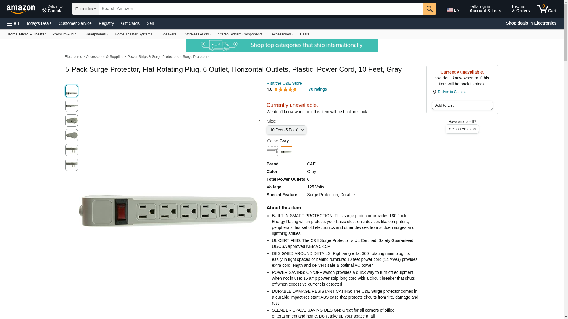 C&E 5 pack, Surge Protector, Flat Rotating Plug, 6 Outlet, Horizontal Outlets, Plastic, Power Cord, 10 Feet, Black - , CNE471070