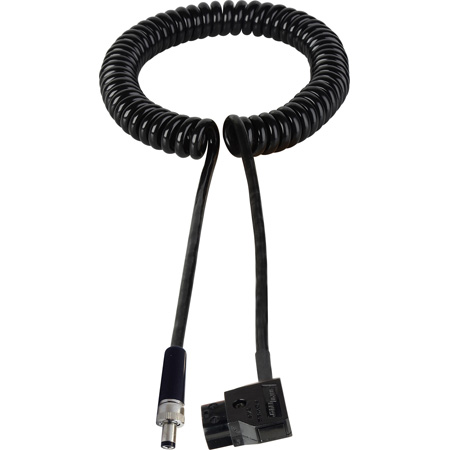 Right Angle D-Tap/Power Tap to Locking 2.1mm DC Plug Power Cable - Coiled 1-3 Foot</p>