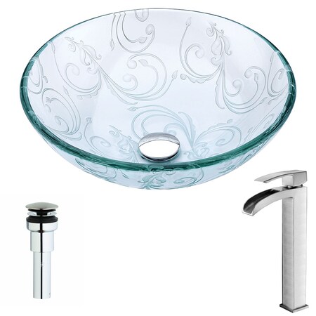 ANZZI Vieno Series Deco-Glass Vessel Sink in Crystal Clear Floral with Key Faucet in Brushed Nickel