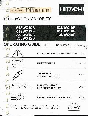 As an Amazon Associate, we earn from qualifying purchases. Buy HITACHI 61SWX10BOM 43UWX10B 53SWX10B 53SWX12B TV Operating Manual HITACHI . 61SWX10BOM Gallery Attributes Brand name, Manufacturer name, ManufacturerHITACHI ConditionNEW Extra Product NameBuy HITACHI 61SWX10BOM 43UWX10B 53SWX10B 53SWX12B TV Operating Manual extendedQty, qtyInStock0 moq, multiple, tierMinQty11 MPN61SWX10BOM qtySourceBlockString SKU35851 snippetHITACHI 61SWX10BOM tv operating manual for 43UWX10B, 53SWX10B, 53SWX12B, 53UWX10B, 53UWX10BA, 61SWX10B, 61SWX12B, 61UWX10B, 61UWX10BA models tierPrice16.95 Distributor offers SellerSKUMOQIn stockMultiplePrices replacementremotes.com35851111 @ $6.95