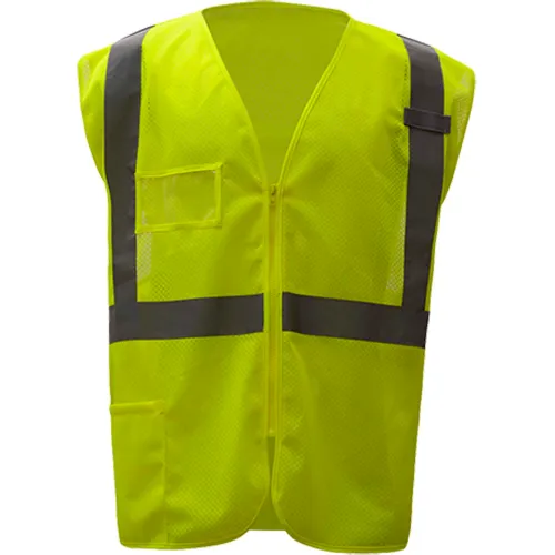 GSS Safety Standard Class 2 Mesh Zipper Safety Vest-Lime-L/XL