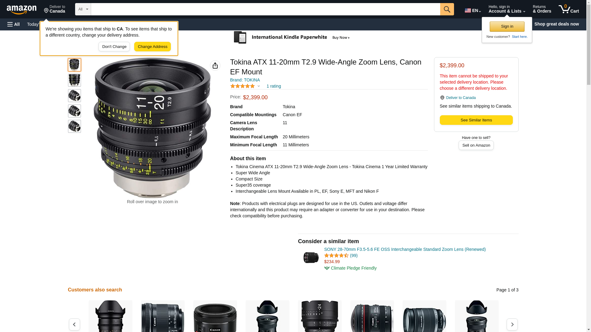Tokina ATX 11-20mm T2.9 Wide-Angle Zoom Lens, Canon EF Mount