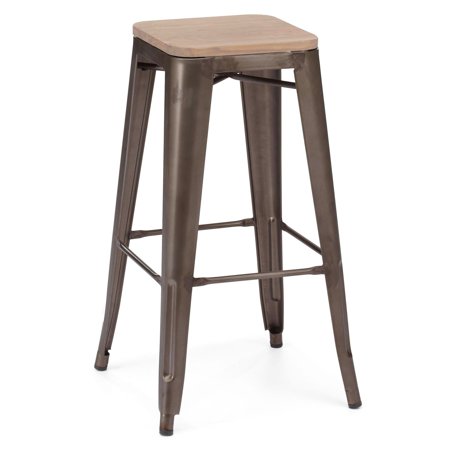 Dreux Tolix Rustic Matte Light Elm Wood Steel Barstool (Set of 4) LS-9100-RMTLW