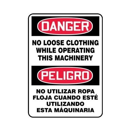 Accuform Danger NO Loose Clothing While Operating This Machinery (Bilingual Spanish) (SBMEQM147XP)
