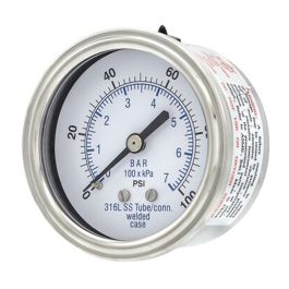 302D-204F PIC Gauges Pressure Gauge, 2" Dial, 0-160 Psi, 1/4" Center Back Mount, Stainless Steel Case, 316Ss Internals, Dry/Fillable