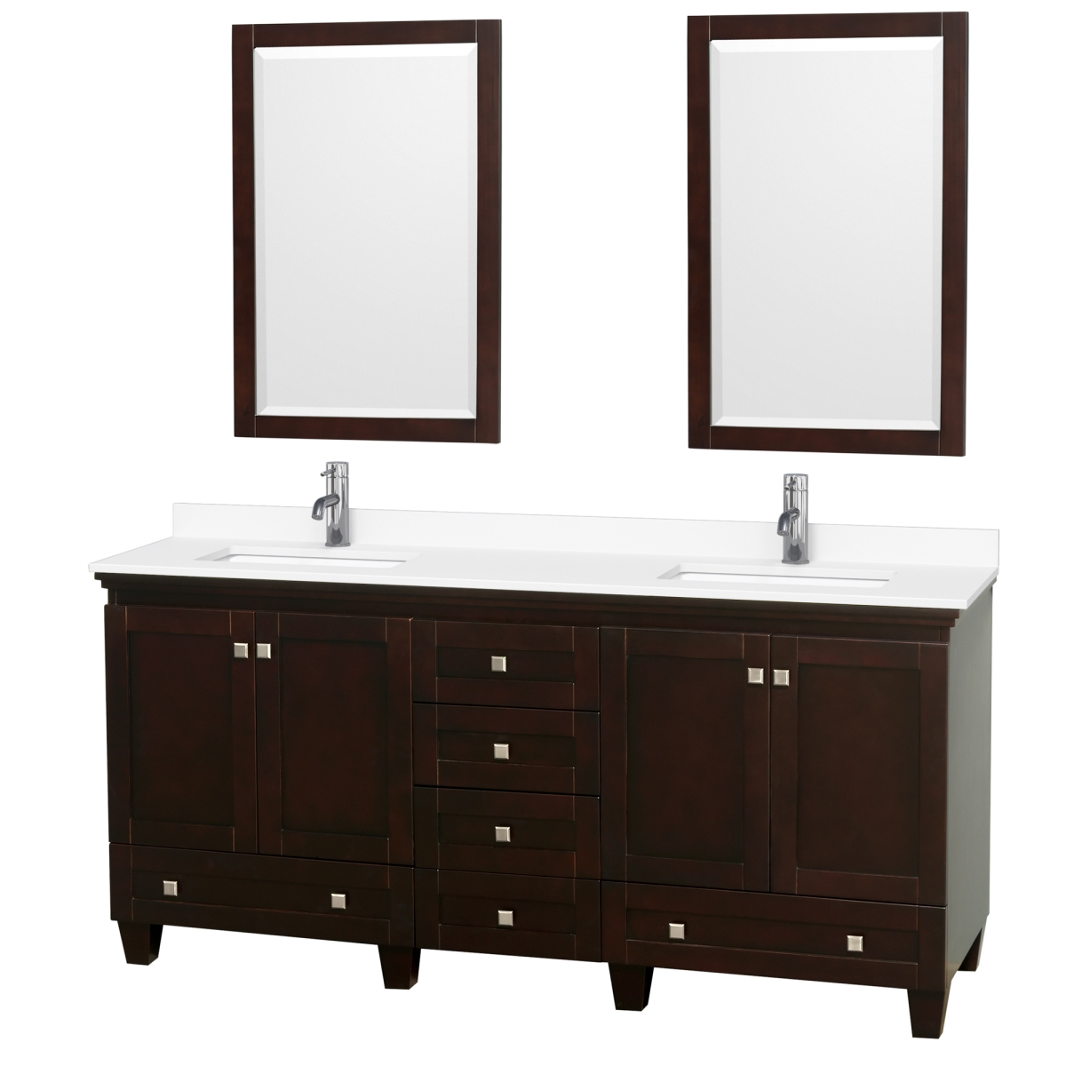 Acclaim 72 Inch Double Bathroom Vanity in Espresso, White Cultured Marble Countertop, Undermount Square Sinks, 24 Inch Mirrors