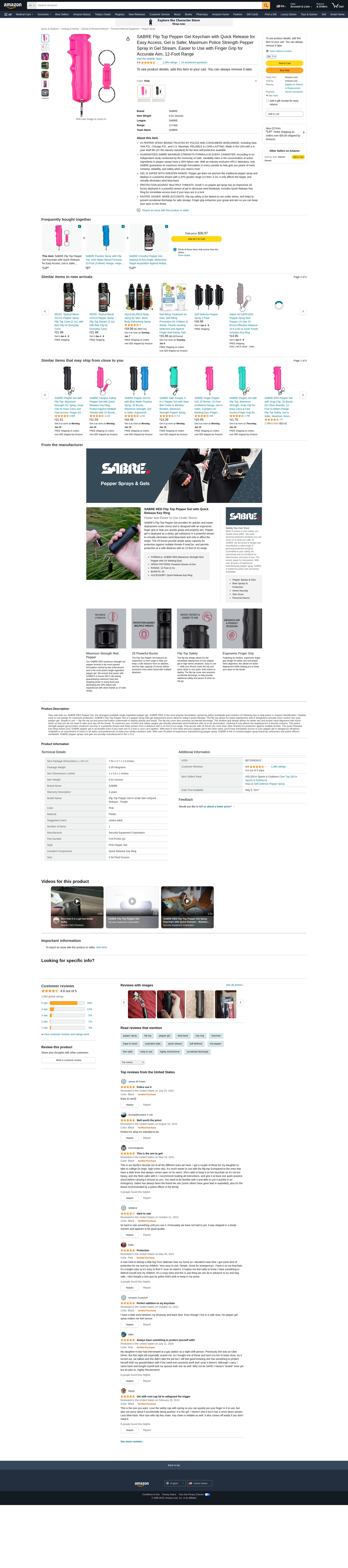 SABRE Fast Flip Top Pepper Gel Keychain with Quick Release for Easy Access, Gel is Safer, Maximum Police Strength Pepper Spray in Gel Stream, Easier to Use with Finger Grip for Accurate Aim