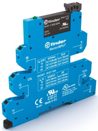 Finder - 39.70.0.125.9024 - SPST-NO Interface Relay Module Push In DIN Rail, DC PLC, 2 A, 138 V - Allied Electronics & Automation, part of RS Group