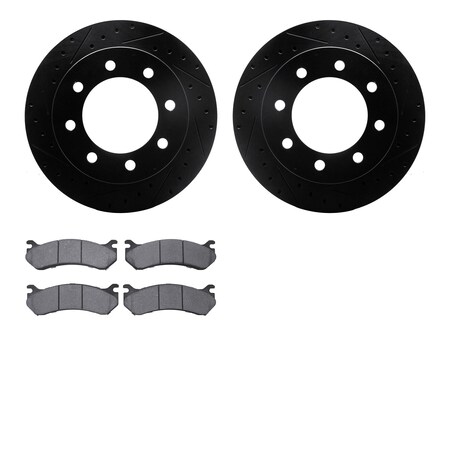 Dynamic Friction Company Rear Brake Rotors-Drilled and Slotted-Black with Ultimate Duty Performance Brake Pads 8402-48026