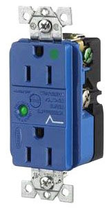 Hubbell HBL8262SA Spike Shield Circuit Guard Hospital Grade Surge Suppression Duplex Receptacle with Light and Alarm, 125V AC, 60Hz, 15A, 2 Pole, 3 Wire, Blue