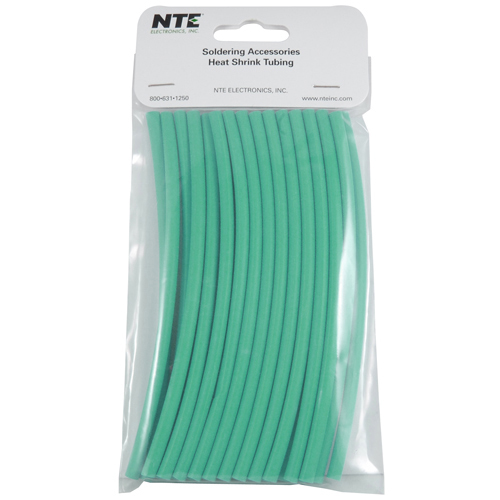 NTE Electronics 47-20406-G Heat Shrink Tubing, Thin Wall, 2:1 Shrink Ratio, 3/16" Diameter, 6" Length, Green (Pack of 25)