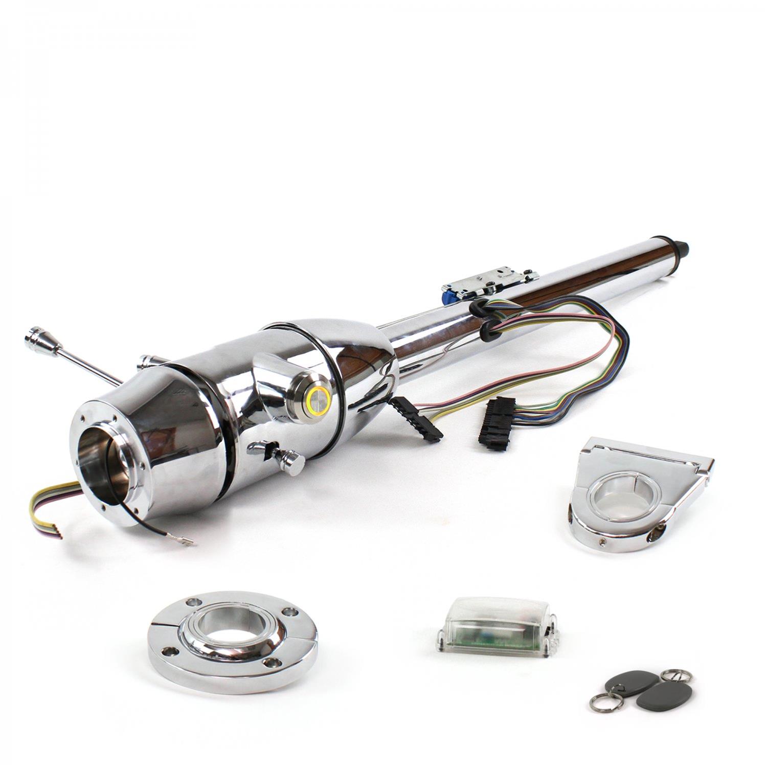 Suspension Pros HEXCC2KXX1356PYL1 Keyed Tilt Column Chrome - Floor Shift 3.5" Drop 6 Hole Push Button YL w/RFID