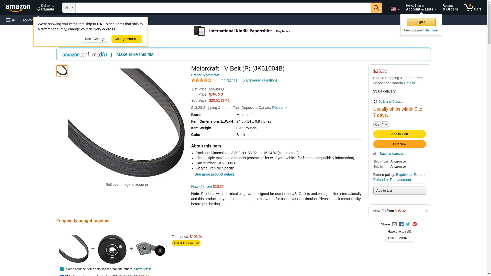 | Feature | Motorcraft JK6-1004B V-BELT |