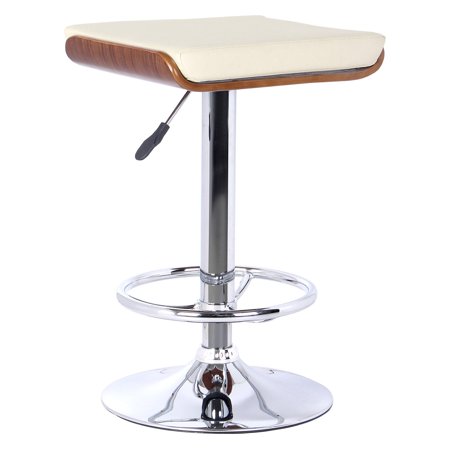 - This modern barstool has a chrome hydraulic lift base and a padded Pu seat