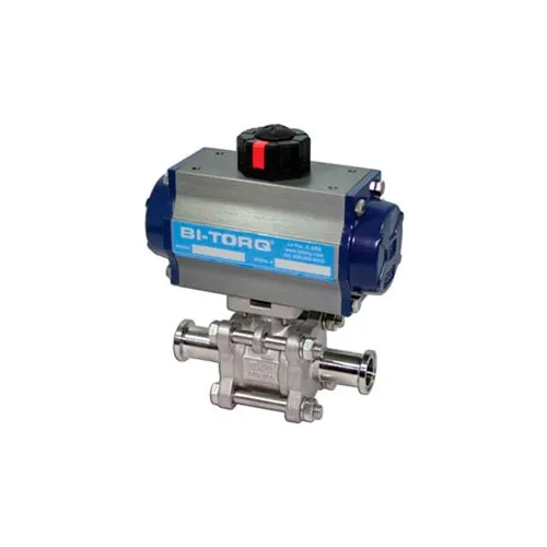 BI-TORQ 3/4" 3-Pc SS Sanitary Clamp End Ball Valve W/Spring Ret. Pneum. Actuator