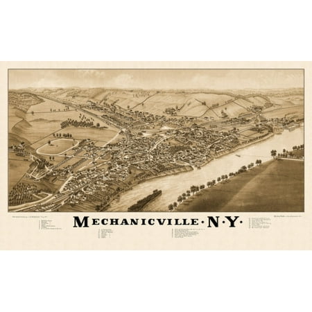 Stretched Canvas Art - Antique Map of Mechanicville New York 1882 Saratoga County - Oversized 36 x 54 inch Wall Art Decor Size.