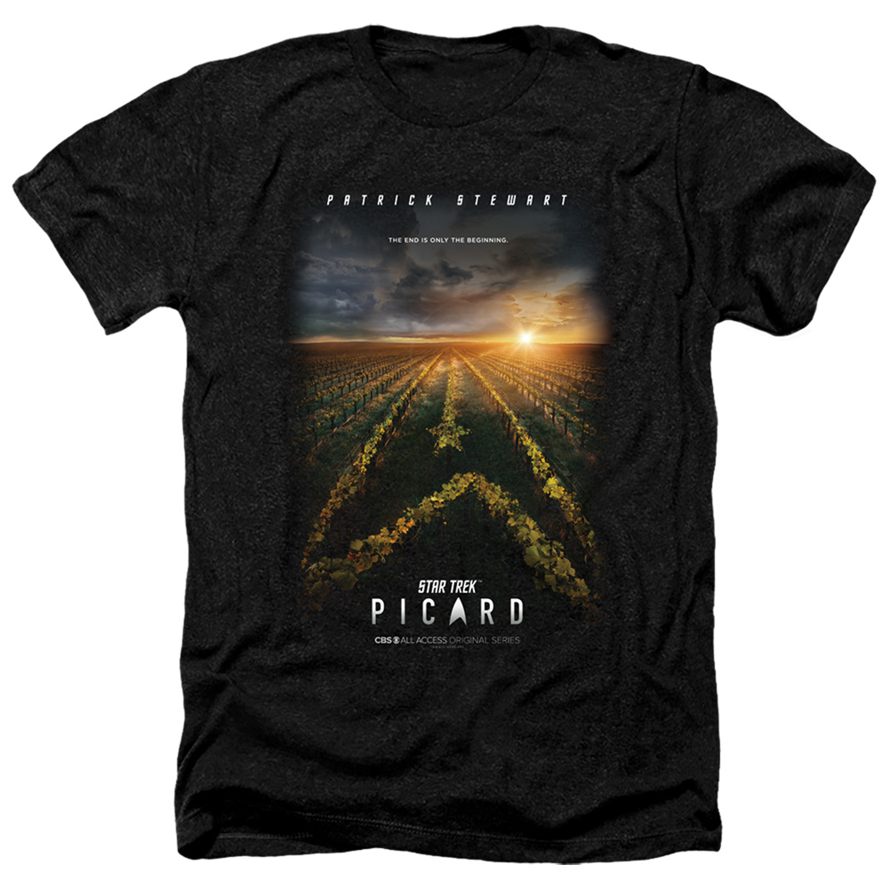 Trevco CBS2593-HA-1 Star Trek Picard & Picard Poster Adult Heather Cotton & Polyster T-Shirt, Black - Small