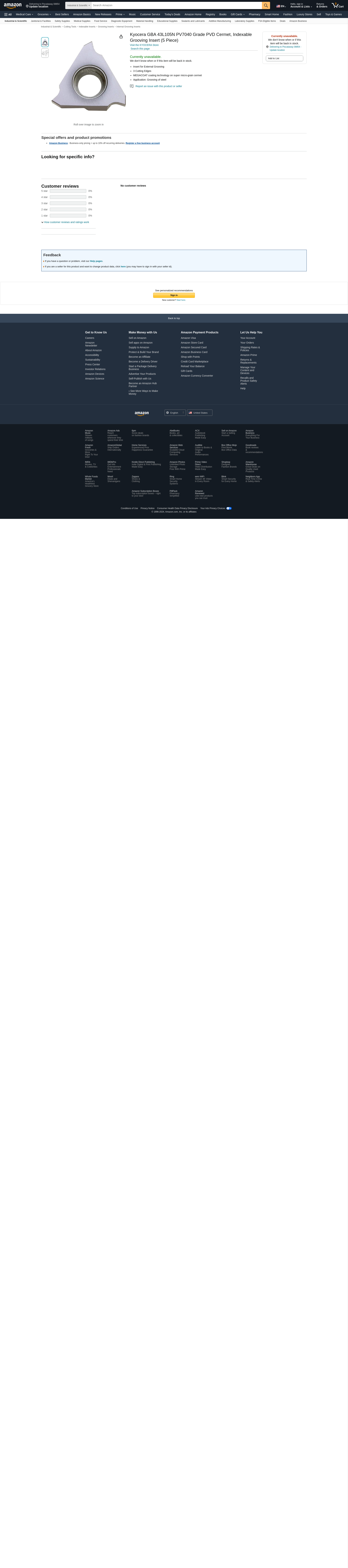 Kyocera GBA 43L105N PV7040 Grade PVD Cermet, Indexable Grooving Insert (5 Piece)