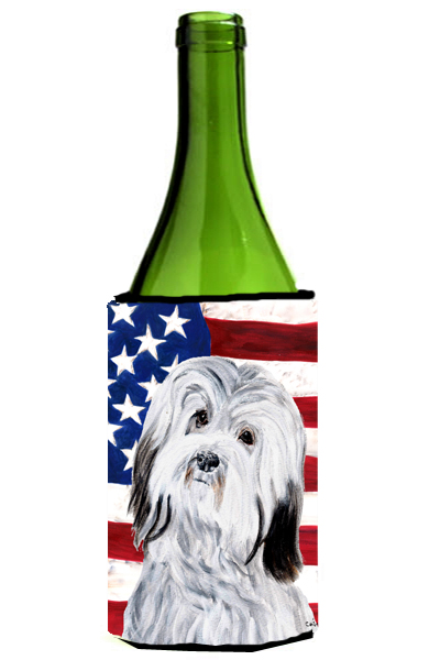 Carolines Treasures SC9641LITERK Havanese With American Flag Usa Wine bottle sleeve Hugger 24 Oz.