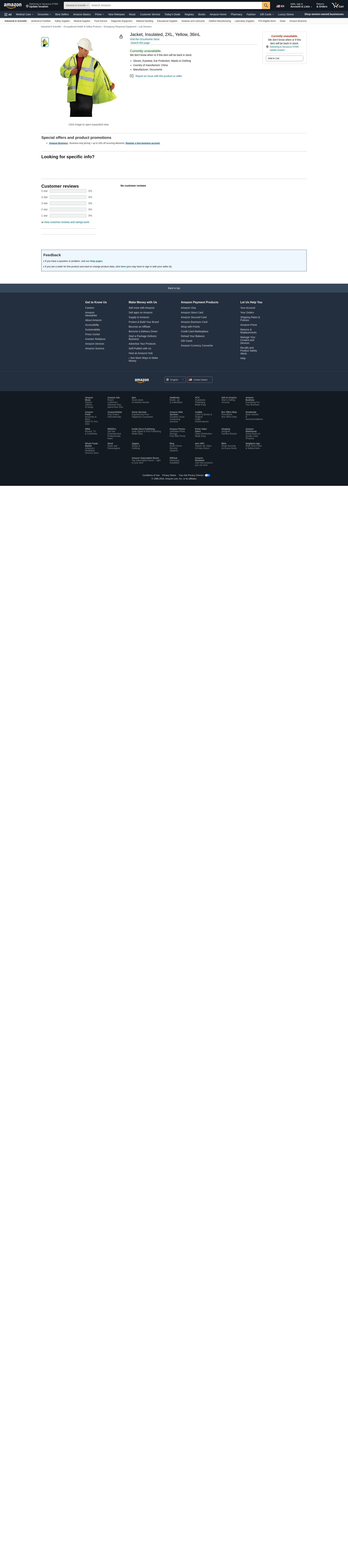 Jacket, Insulated, 2XL, Yellow, 36inL