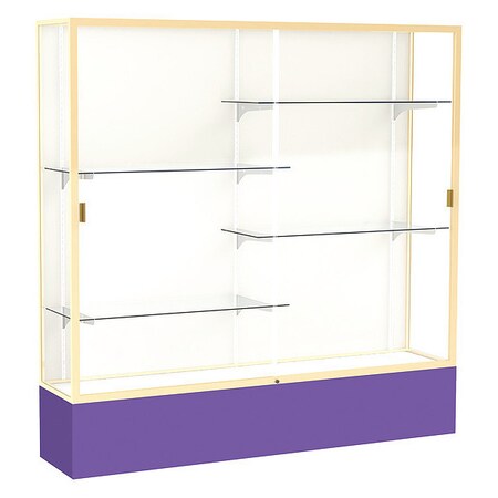 Waddell Spirit Plaque Back Display Case, 72W by 72H by 16" D, Champagne Gold Finish with Purple Base