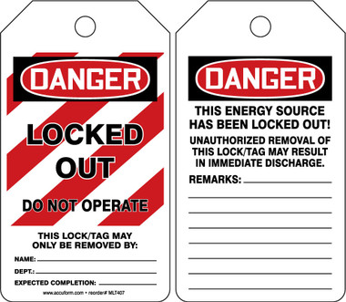 Order MLT407LTM by Accuform OSHA Danger Safety Tag "Locked Out ..." - US Mega Store