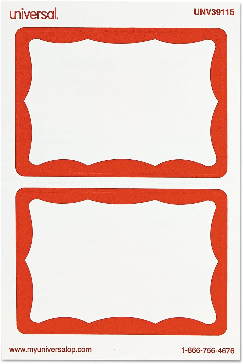 Universal 39115 Border-Style Self-Adhesive Name Badges, 3 1/2 x 2 1/4, White/Red, 100/Pack