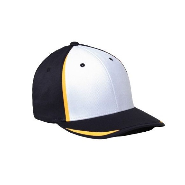 Pacific Headwear 472F.375.S-M M3 Performance Flexfit Cap - White, Black & Gold - Small & Medium