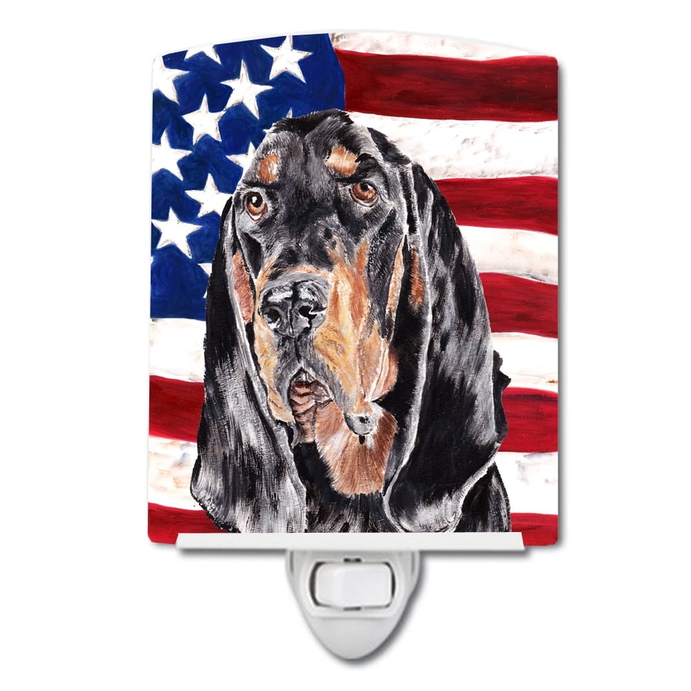 Carolines Treasures SC9511CNL Black & Tan Coonhound with American Flag Ceramic Night Light