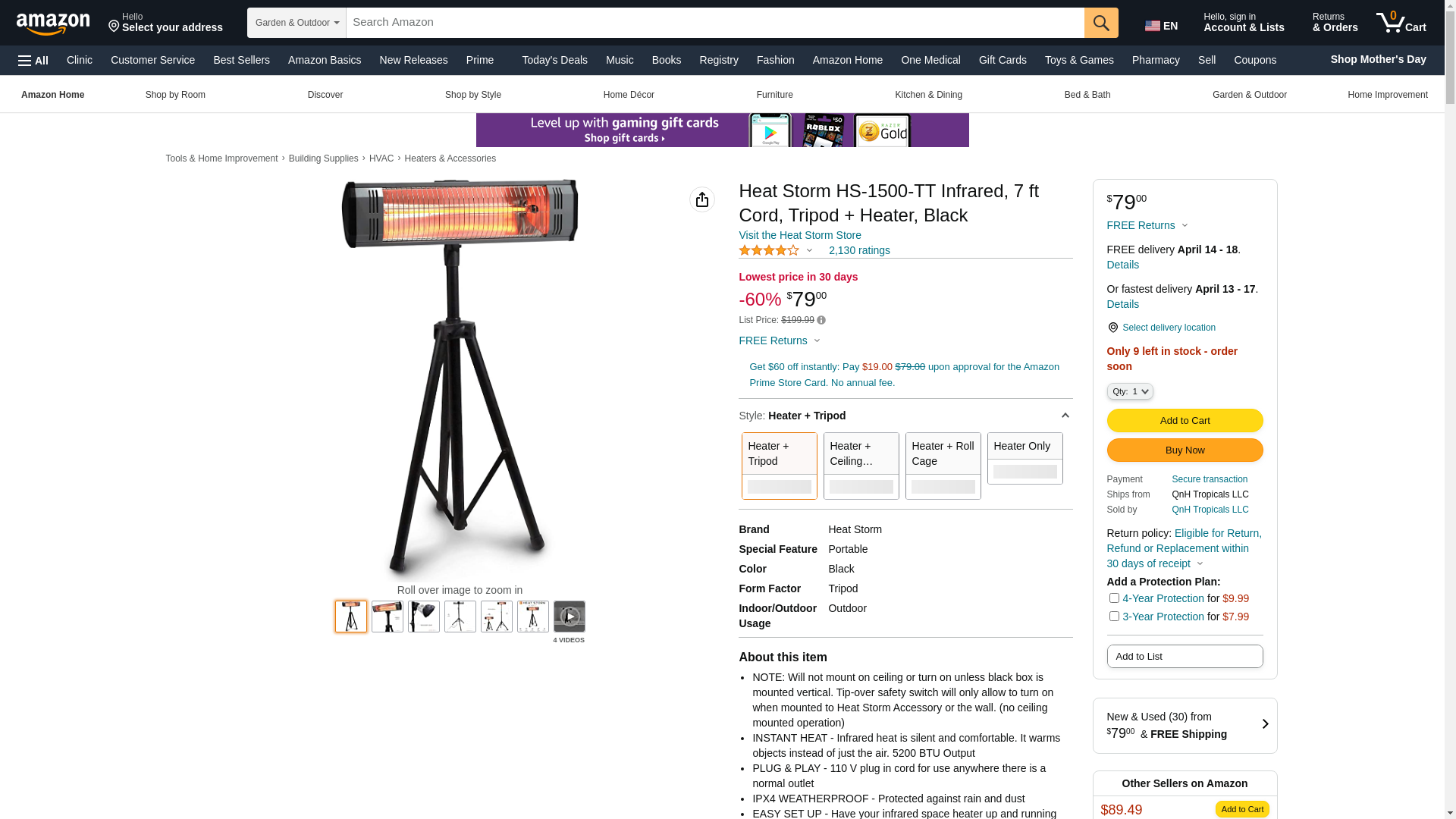 Heat Storm HS-1500-TT Infrared, 7 ft Cord, Tripod + Heater, Black