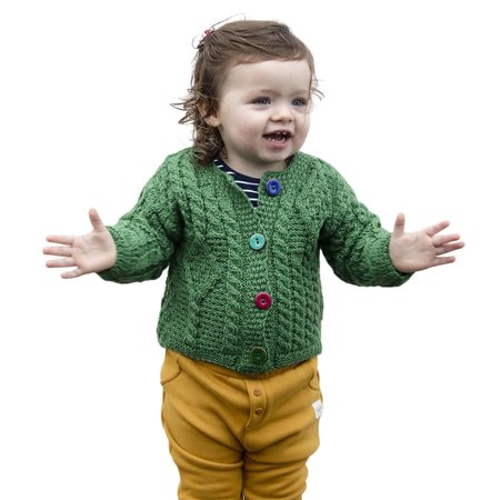 <ul> <li>100% Irish Merino Wool</li> <li>Multicolored buttons</li> <li>Available sizes: Small 3-6 Months, Medium 6-12 Months, Large 12 -18 Months.</li> </ul>