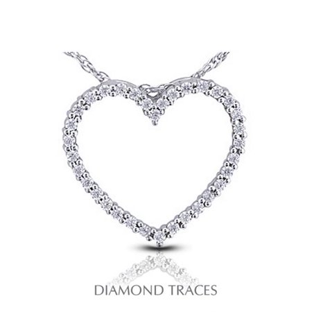 <p>This beautiful 14k white gold heart shape pendant features 28 round diamonds with a total weight of 0.68 carat. The diamonds are certified by AGI Laboratories as a 100% Natural Diamond G color, SI2 clarity, and with Excellent cut. To emphasize the true fire and brilliance of the diamonds, our master jeweler chose prong setting method. </p> <b>Features</b> <ul> <li>0.68 Carat Total Natural Diamonds</li> <li>14K White Gold Prong Setting</li> <li>Heart Shape Fashion Pendant</li> </ul> <b>Specifications</b> <ul> <li><b>Weight:</b> 0.002 lbs</li> <li><b>Dimension:</b> 0.31 x 0.76 x 0.05 in. </li> </ul>- SKU: DMTD2169