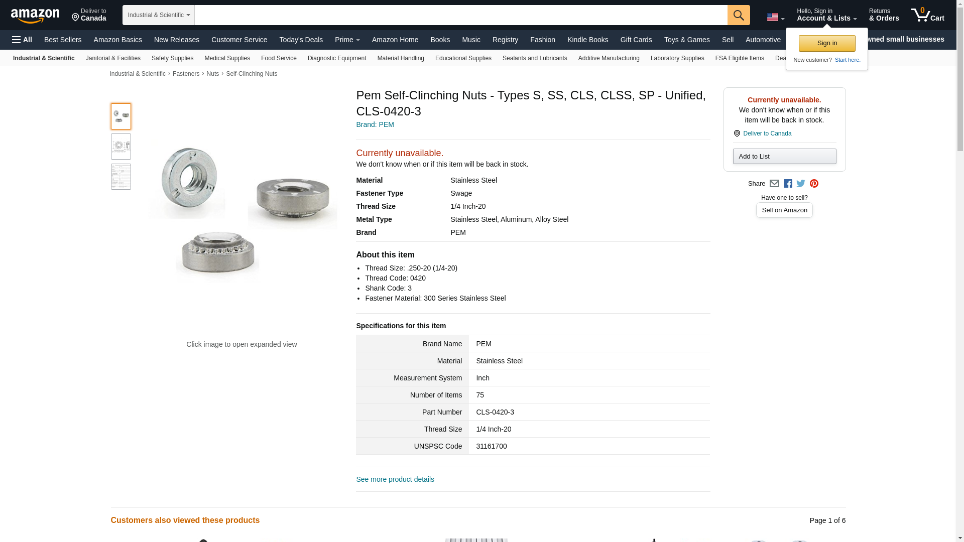 Pem Self-Clinching Nuts - Types S, SS, CLS, CLSS, SP - Unified, CLS-0420-3