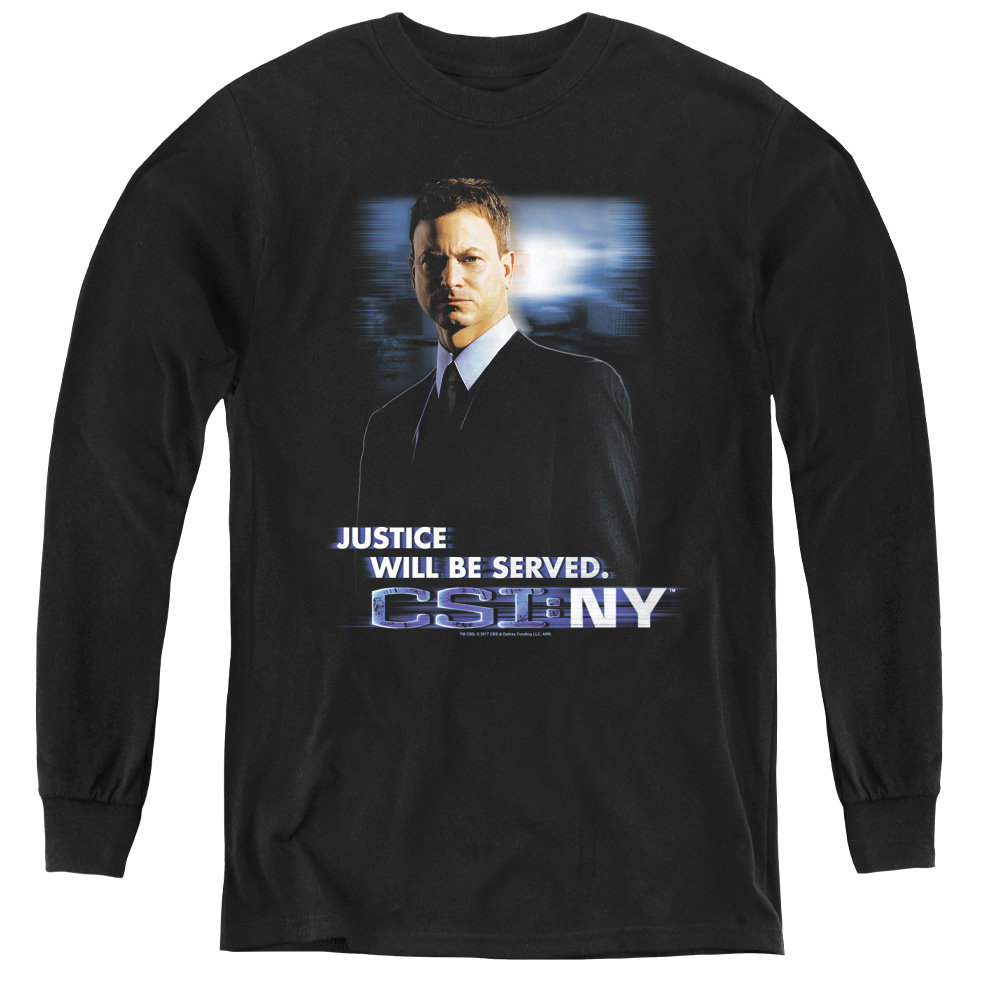 Trevco CBS978-YL-3 CSI NY & Justice Served - Youth Long Sleeve Tee, Black - Large