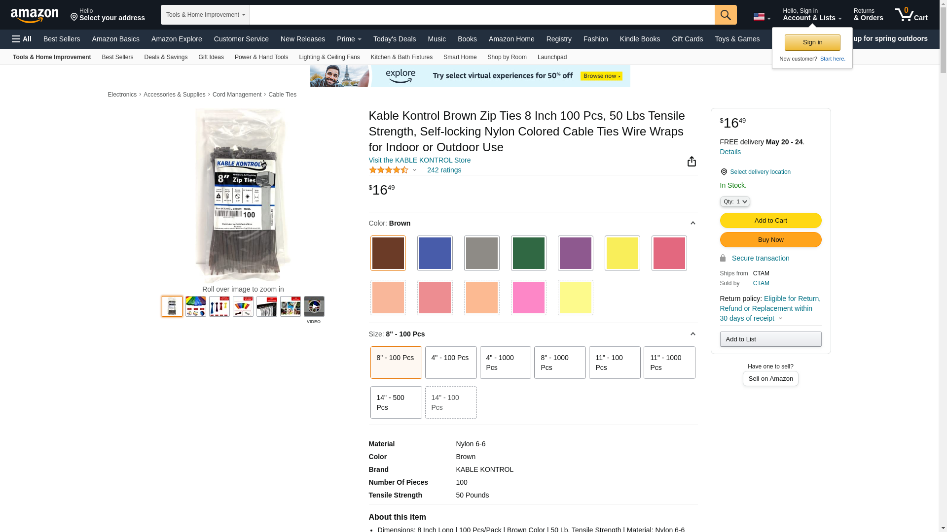 - Dimensions: 8 Inch Long | 100 Pcs/Pack | Brown Color | 50 Lb. Tensile Strength | Material: Nylon 6-6
