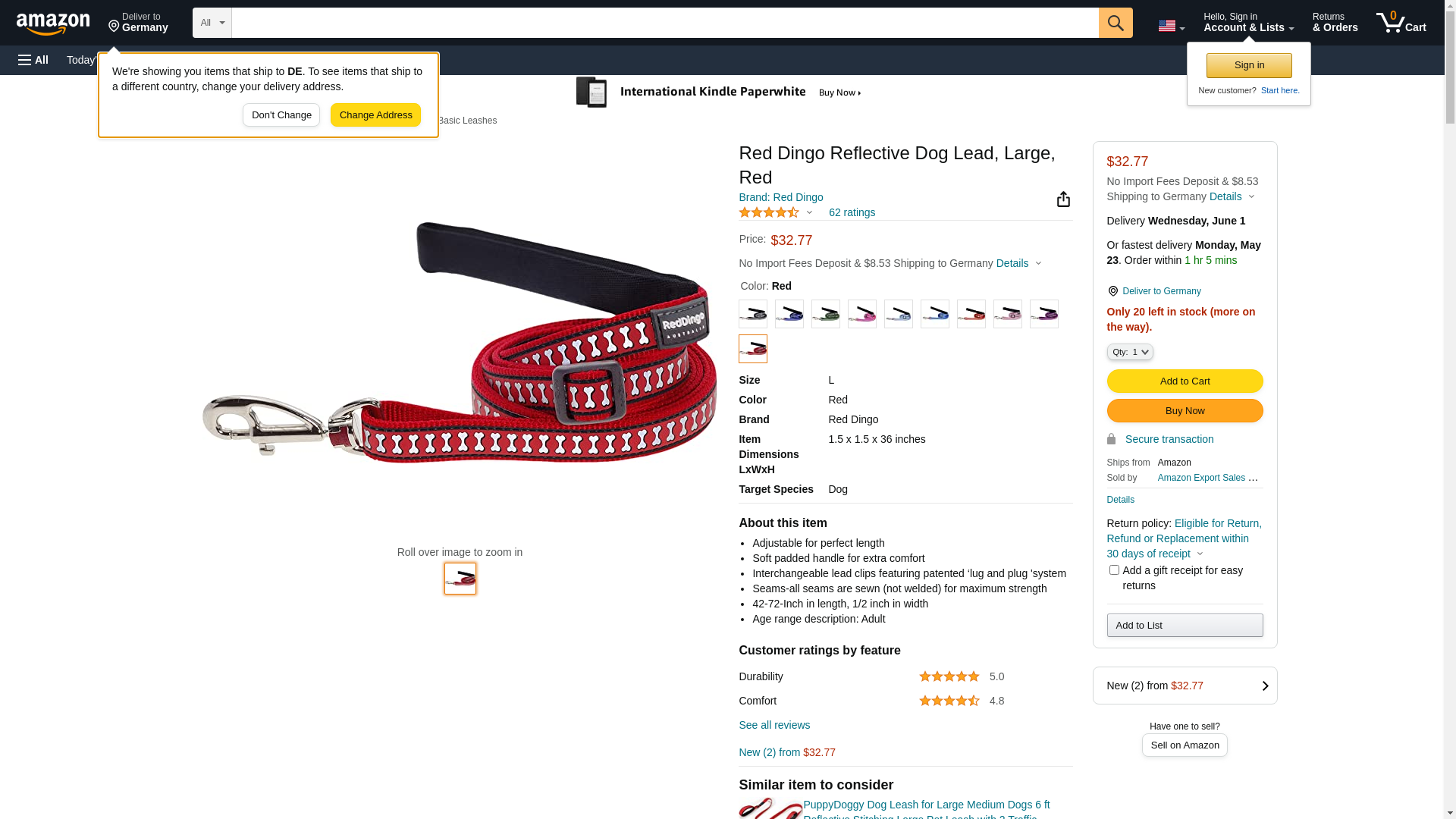 Red Dingo L6-RB-RE-LG Dog Lead Reflective Red, Large